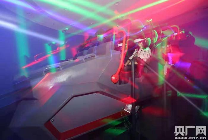 VR騎乘配有8個座位,市民可以體驗“過山車”一般從海河到深海再入太空的視覺體驗(央廣網發 賈成龍 攝)