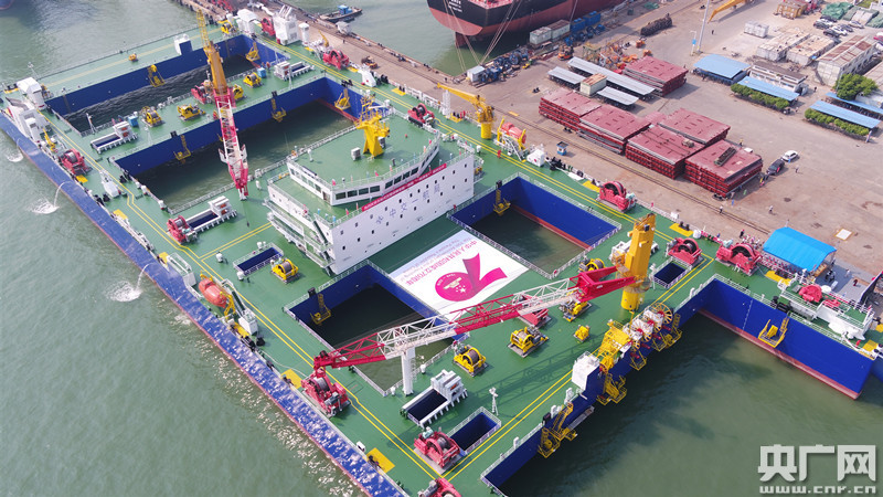 世界首制沉管隧道浮運安裝一體船26日順利交船(央廣網發 通訊員供圖)