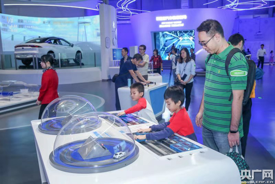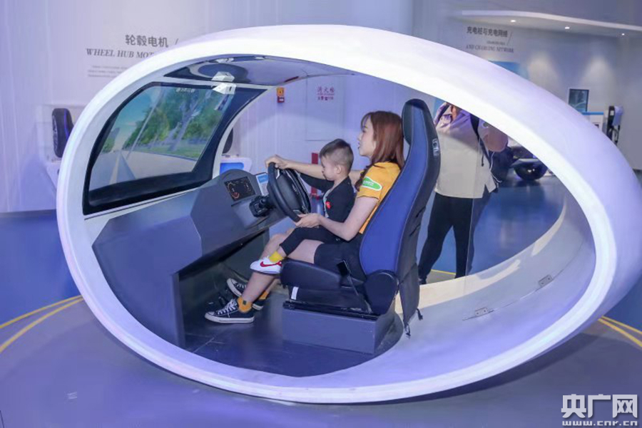 全國首個“低碳&新能源汽車”科普體驗館正式開放。圖為觀眾參與互動體驗(央廣網發 通訊員供圖)