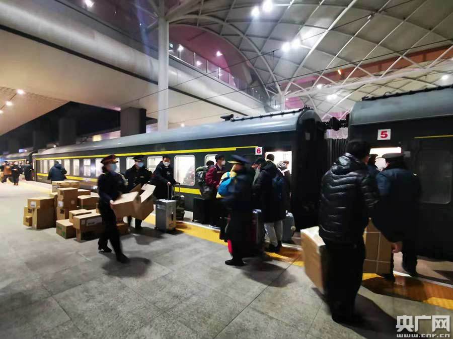 河北省援鄂抗疫醫療隊第一批隊員150人馳援武漢 醫療隊踏上由北京西開往長沙的Z1次列車(央廣網記者 王志達 攝)