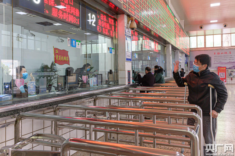央廣網長沙2月3日消息(記者鄧文輝 通訊員莫平)2月3日15時許,在湖南衡陽火車站發生暖心一幕:一名拄著拐杖的鐵路小伙,帶著50副防護手套來到車站售票大廳,當面交到了售票值班員朱湘南手中。