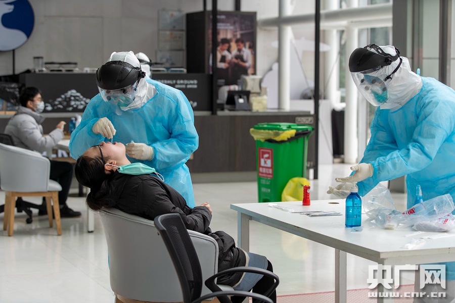寧波一家地產公司的員工正在做核酸檢測(央廣網記者 杜金明 攝)