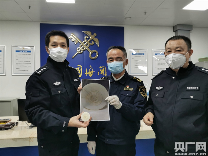 該快件物品申報品名為“餐具蓋”“瓷盤”“瓷杯”各1件。關員開箱查驗發現,包裹內有瓷杯、瓷盤及一個牙白色的小盒子。經過肉眼判斷,申報為“餐具蓋”的物品符合象牙制品一般特征,遂進一步使用物像識別儀進行檢測,經多次不同角度檢測,均提示為“象牙”。2月14日,經華南野生動物物種鑒定中心專業鑒定,認定為象牙制品,凈重40克。目前該案件已移交緝私部門作進一步處理。