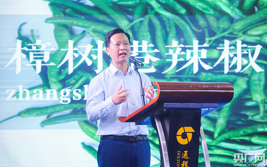 湘陰縣縣長李鎮(zhèn)江激情推介湘陰獨(dú)具特色的鄉(xiāng)村文化旅游和“辣”名鵲起的地標(biāo)名片樟樹港辣椒(央廣網(wǎng)發(fā) 主辦方供圖)