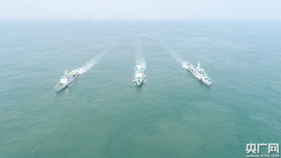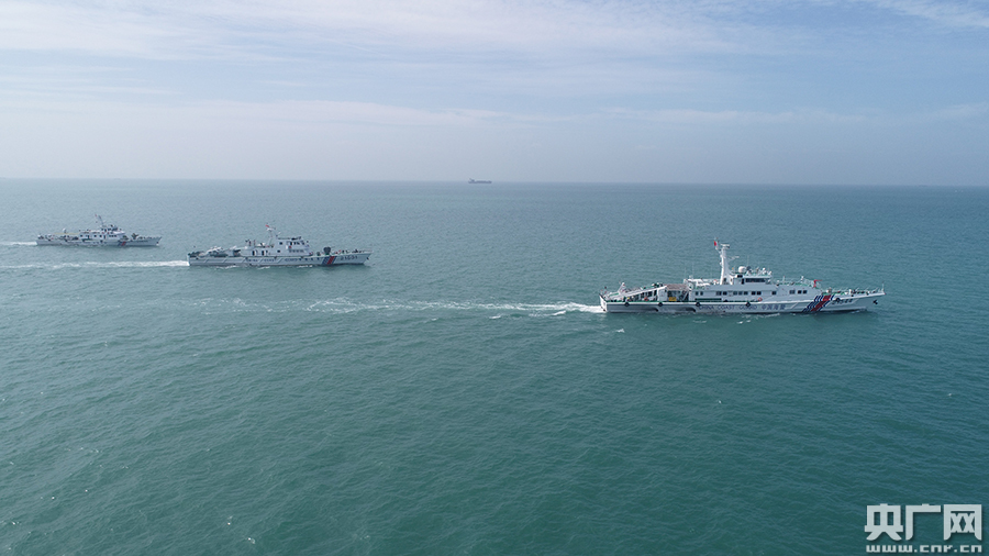 海警艦船開展編隊(duì)巡航管護(hù)(央廣網(wǎng)發(fā) 湛江海警局供圖)