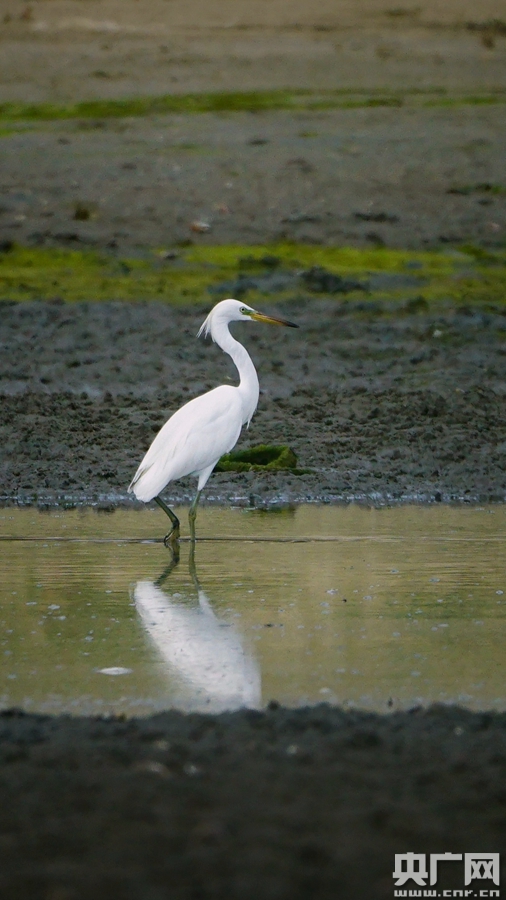 湛江首次影像記錄到珍稀水鳥黃嘴白鷺(央廣網發 廣東省林業局供圖)