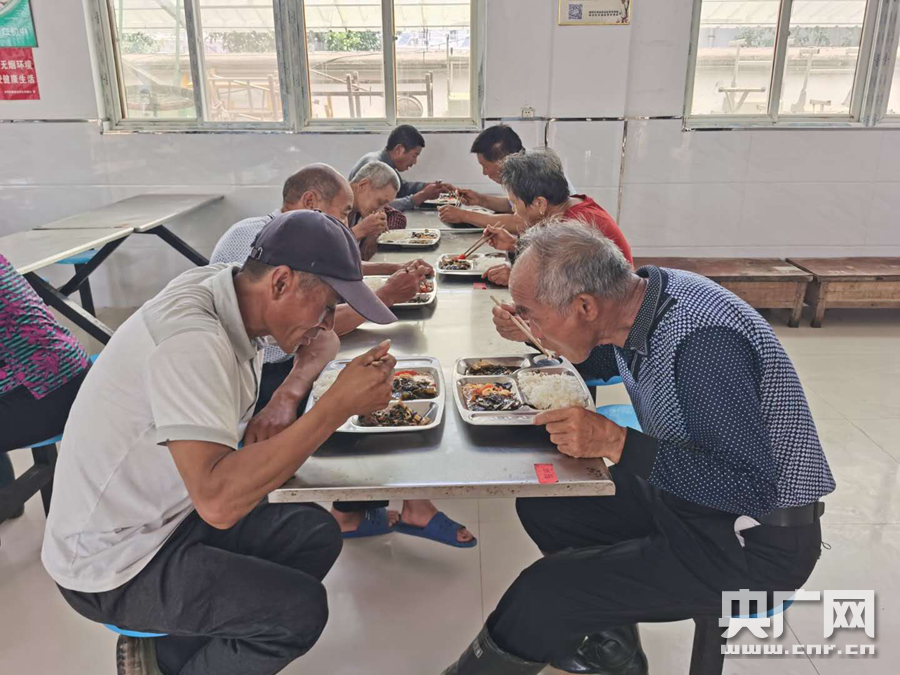 村民們在臨時安置食堂就餐(央廣網發 通訊員供圖)
