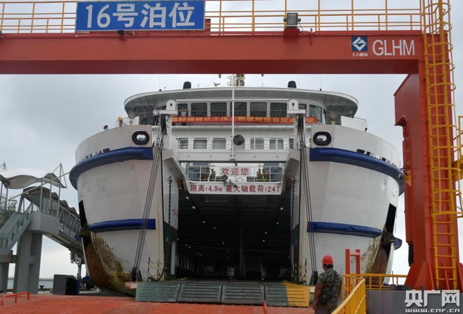 湛江海事助力全球最大客滾輪渡碼頭完成船舶試靠(央廣網發 湛江海事局供圖)