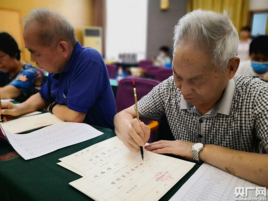 陜師大老教授正在書寫錄取通知書(央廣網記者 雷愷 攝)