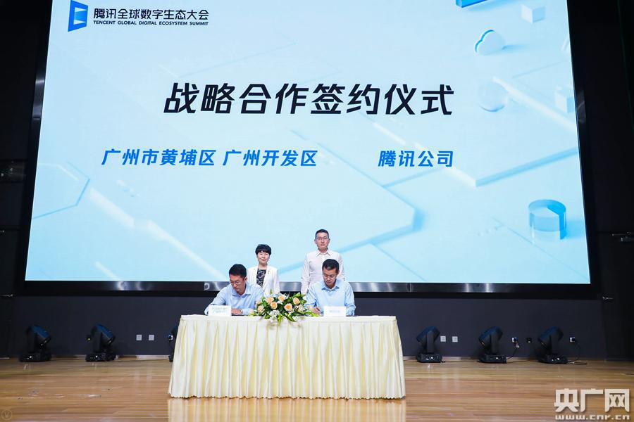 黃埔區、廣州開發區與深圳市騰訊計算機系統有限公司(以下簡稱騰訊)簽訂戰略合作協議(央廣網發 黃埔區供圖)