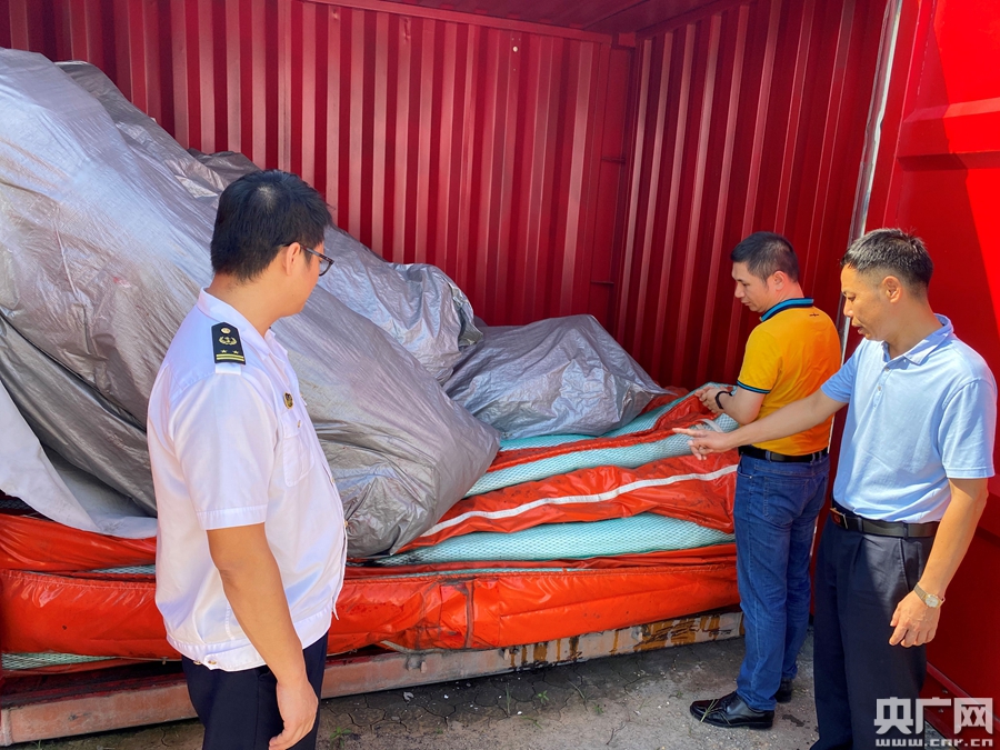 執法人員檢查溢油應急設備庫(央廣網發 肇慶海事局供圖)