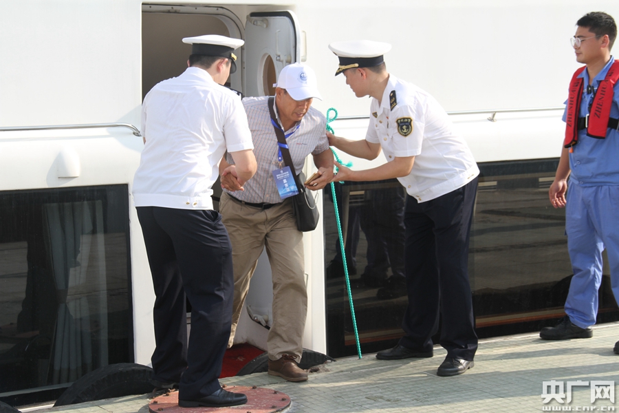 引導珠江片區“中國航海日”考察嘉賓下船(央廣網發 肇慶海事局供圖)