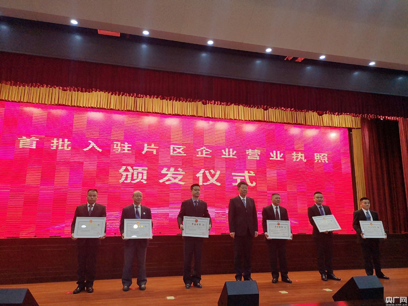 首批頒發六家企業營業執照。(央廣網記者 徐秋韻 攝)