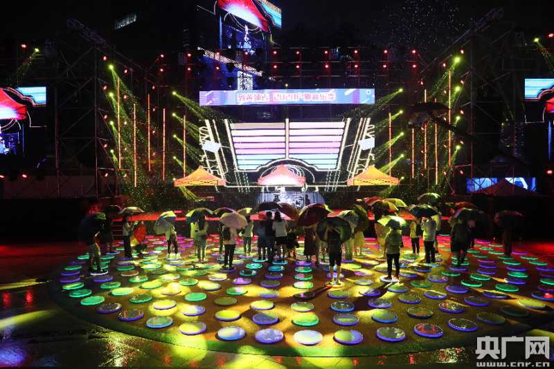 黃埔戶外音樂季演出吸引不少市民冒雨駐足觀看。(央廣網發 鐘燚 攝)