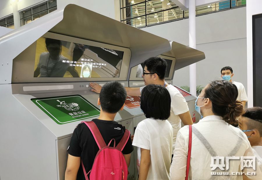數(shù)字生態(tài)成果展區(qū)中,工作人員向觀眾演示智能垃圾分類(央廣網(wǎng)記者 魏文欣 攝)