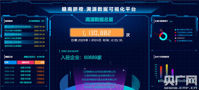 贛南臍橙鏈溯源數據可視化平臺(央廣網發 通訊員供圖)