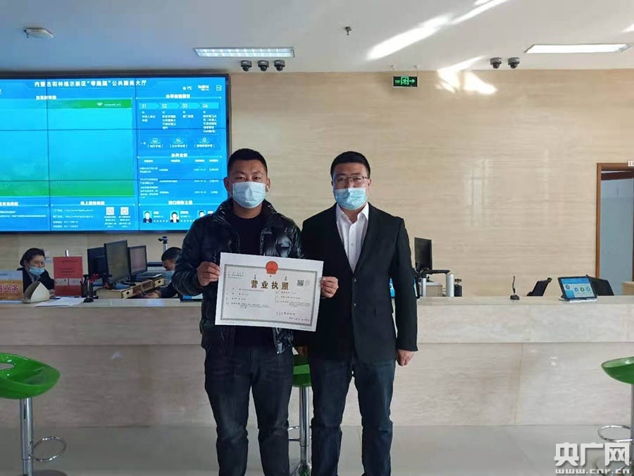 某公司通過“企業登記全程電子化”領取營業執照(央廣網發 和林格爾新區管委會供圖)