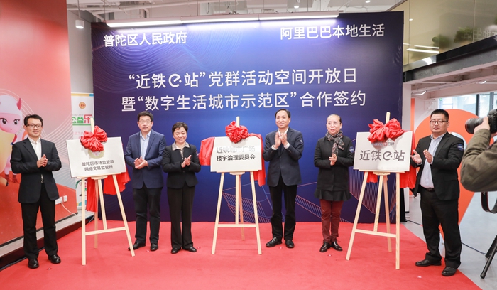 會上,上海市委組織部副部長孫甘霖,上海市市場監管局一級巡視員胡浩,普陀區區委副書記、區長姜冬冬,阿里巴巴副總裁方建生,阿里本地生活副總裁鄭威等出席活動,并為“近鐵e站”揭牌,標志著普陀樓宇黨建進入引領、服務、治理“三位一體”相互融合、相互促進的新階段。普陀區與阿里巴巴本地生活簽署上海首個“數字生活城市示范區”戰略合作協議,雙方表示將推動普陀區在線新經濟、數字新基建的發展,助力普陀區全面加速打造數字經濟新優勢。