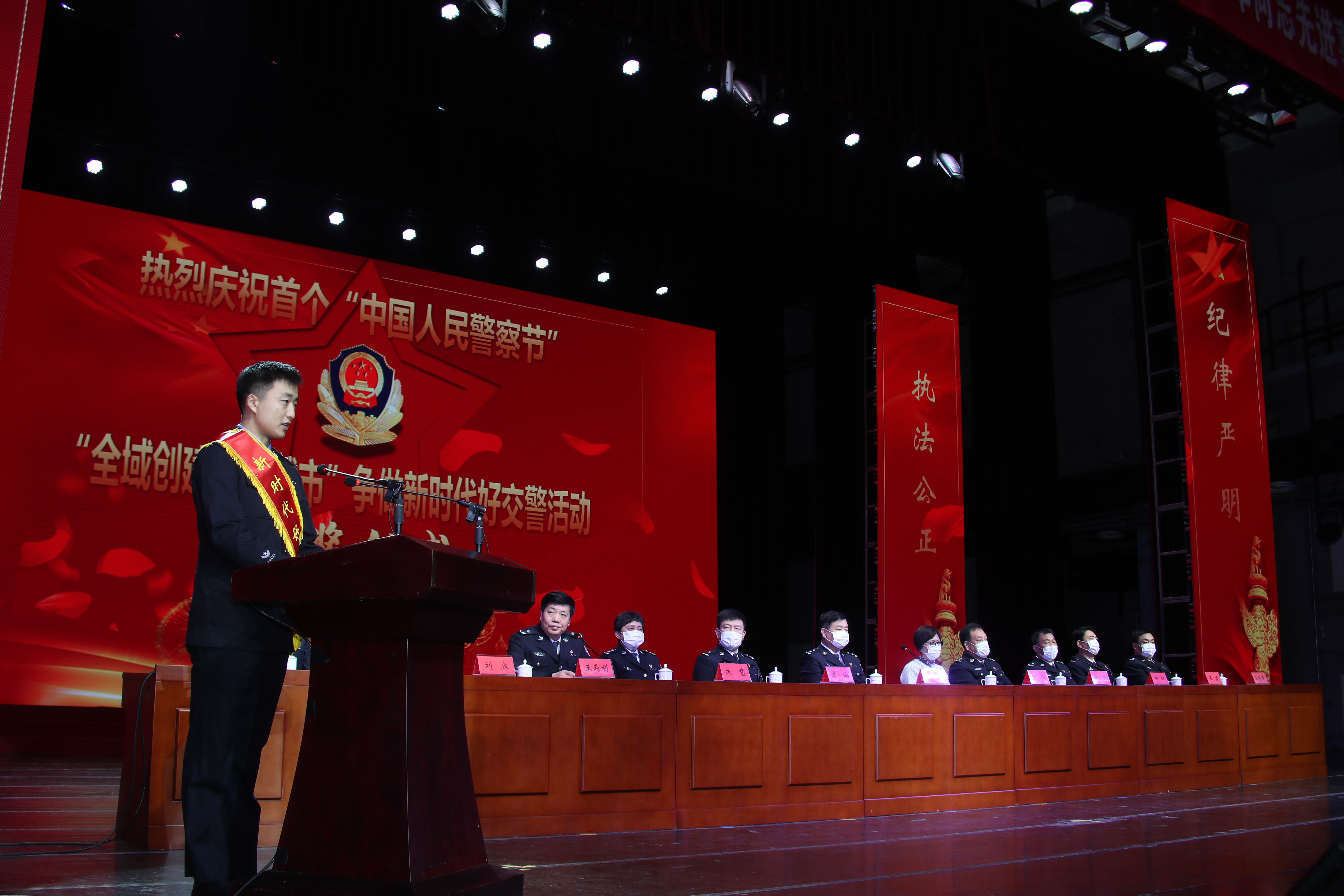 頒獎儀式上,天津市公安交管局集中對36名“新時代好交警”、92名“新時代優秀交警”以及100名“新時代優秀輔警”進行了表彰,河西支隊東風里大隊友誼警區警長連捷、直屬支隊治理指導大隊三級警長喬柯鈞以及和平支隊泰安道大隊輔警陳浩琪分別作為交警、輔警代表表態發言。