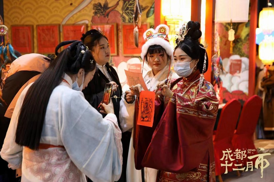 據介紹,成都自古因商而立、因商而興。從唐代開始,成都每個月都會在當時最繁華的大慈寺一帶,舉行類似于現在商品交易博覽會的集會,到了宋代,這種交易會形成了“十二月市”的固定叫法。北宋趙抃在《成都古今集記》中明確記載了“成都十二月市”:“正月燈市,二月花市,三月蠶市,四月錦市,五月扇市,六月香市,七月七寶市,八月桂市,九月藥市,十月酒市,十一月梅市,十二月桃符市。”