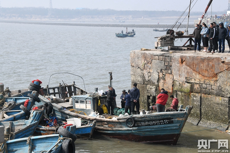 3月14日,紅島漁港碼頭,出海捕撈海星的漁船返港。(央廣網記者 王偉 攝)