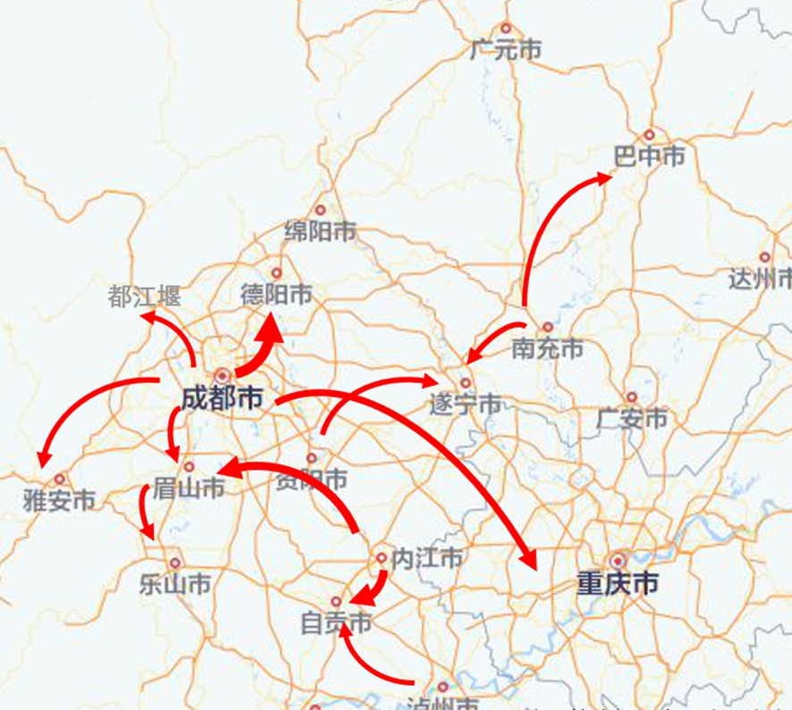 從分布來看,路網流量圍繞成都等中心城市呈放射狀分布,成都市周邊各主線站以及連通主線站的環線高速車流量最為密集,發生擁堵的可能性較大。成綿、成綿復線、成自瀘、成雅、成德南、成渝等高速預計迎來高出行流量,遂渝、渝蓉高速將承受較大進出川流量壓力。