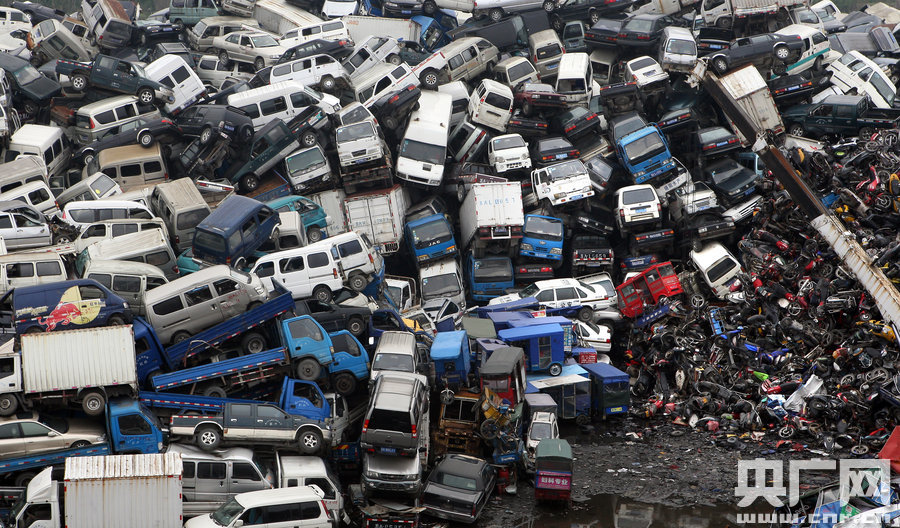 2015年03月19日,浙江省杭州市,在杭州記者看到一個(gè)報(bào)廢車墳場(chǎng)。廢舊車輛堆在一起遠(yuǎn)看像一座山,從航拍器俯瞰、場(chǎng)面更加震撼。據(jù)工作人員介紹,所有車輛加起來數(shù)十萬都有了。