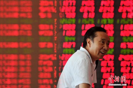 (資料圖7月21日,山西太原一證券交易所,股民笑容滿面關注泛紅的股市大盤。中新社發 韋亮 攝