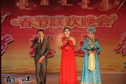 烏仁圖雅(右一)在主持和什托洛蓋鎮春節聯歡晚會