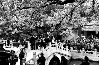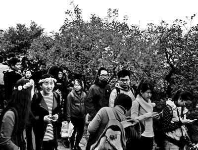 上周末香山公園迎來客流高峰。每天六七萬游客的到來雖然還不至于讓景區飽和,但香山周邊的交通狀況不容樂觀。昨天下午,北京青年報記者避開高峰時間前往香山公園,但依舊“一路囧途”,行至最后一公里時交通幾近癱瘓。其中不少游客返程時仍然擠不上車,而“黑車”價格則高至100元一車。