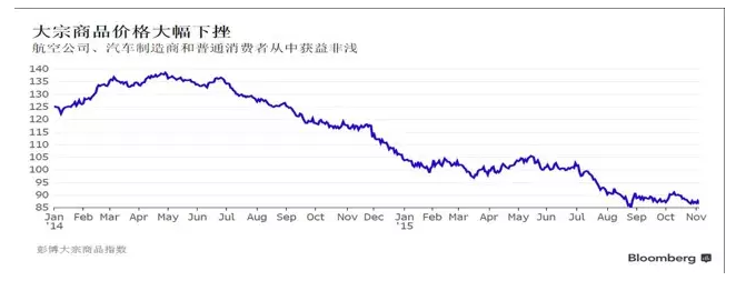 圖表:大宗商品價格暴跌,大宗商品價格下跌令航空公司、汽車制造商和消費者受益 數據來源:彭博商品指數