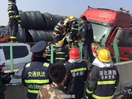 【武鄂高速11車連環相撞 有人員被困】今天早上九點多鐘,武鄂高速武漢往黃石方向巴家灣隧道附近,11車連環相撞,造成8人被困,消防官兵已經救出5人,現場施救工作仍在繼續。目前,事故發生原因不明。#直播前線#(記者:張娜 周友源)