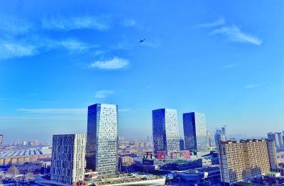 今天天氣晴好,記者在通州北苑附近看到,天空一片蔚藍 攝/記者 劉暢