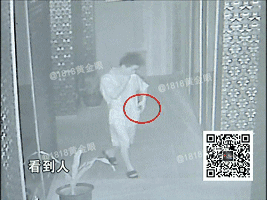 這名穿著浴服的男子,漸漸靠近包廂的房門,從摸清情況到出來,也就半分多鐘,出門時,男子左手多了一件黑黑的東西,隨后塞進了褲袋。