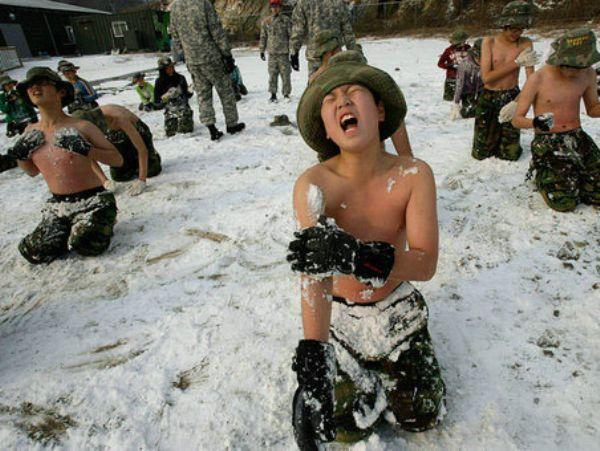 韓國軍事化戒網癮,學生冰天雪地赤裸上身受訓