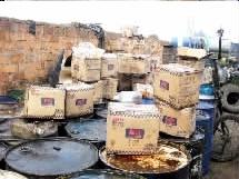 兩名男子在南明區永樂鄉非法開設地溝油初加工小作坊,每天將大量潲水進行加工提煉,隨后運到湖北某廠家,進行二次加工提煉,將生產出來的地溝油銷到市場。發現情況后,南明區工商和質監部門立即組織執法人員前往事發地,永樂派出所則在第一時間增援警力趕到。
