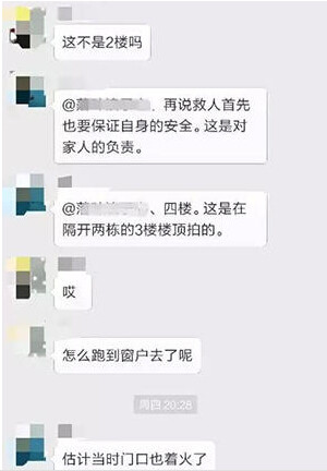 李先生(化名)描述,拍攝的時(shí)候他兩只腳都在抖,心里也很激動(dòng)。在看到死者身上著火的時(shí)候他就沖下樓去,看看能不能幫上忙。樓下圍了好多人,一直都有砸門聲,他也幫不了。李先生(化名)表示,他沒有將視頻發(fā)到朋友圈,只是發(fā)到了一個(gè)同學(xué)群里。現(xiàn)在他的手機(jī)微信已經(jīng)被封號(hào)了,朋友給我截了當(dāng)時(shí)的圖。