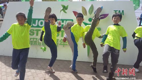 圖為參加“森林跑”的小學(xué)生在做跑前熱身。吳合琴 攝
