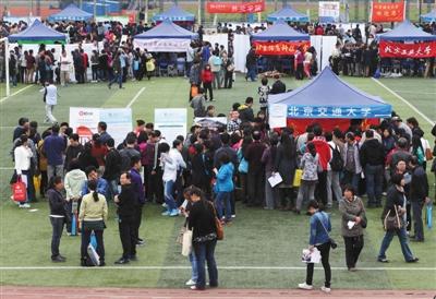 2015年5月9日,高招咨詢會在北京建筑大學大興校區舉行,考生和家長在各高校展臺咨詢高招信息。新京報記者 尹亞飛 攝