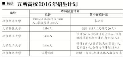 目前,除上述5所高校公布2016年招生計劃外,在京部屬高校中,已有10余所高校“透露”了今年的招生計劃。新京報記者發現,絕大多數在京招生計劃與去年持平。