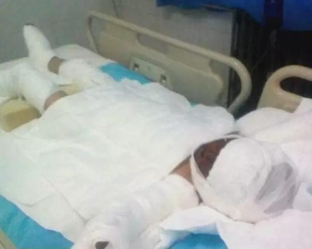 前天是六一兒童節,延津縣馬莊鄉王泗坡村的小鵬卻在醫院度過了他的第11個兒童節。5月24日旁晚7點多,11歲的小鵬獨自一人在家,他爸爸在外地打工,媽媽在地里干農活還沒有回來。就是這時候,意外發生了。在他打開廚房電燈開關的一瞬間,突然發生了爆燃,事故導致小鵬頭部和身上被嚴重燒傷。
