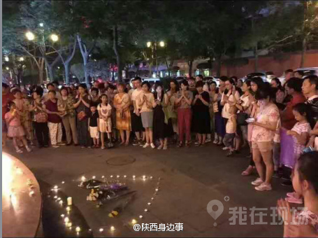 7月5日晚,部分業主在小區門口擺上蠟燭悼念逝者。圖據@陜西身邊事。