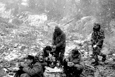 搜救人員簡(jiǎn)單就餐。