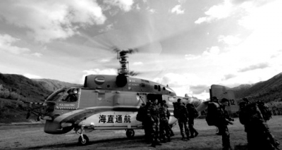 當(dāng)?shù)爻鰟?dòng)直升機(jī)參與搜救,并投放食物等物資。
