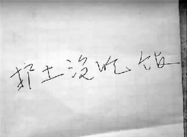 田夢園似乎理解了老人的意圖,把筆和紙遞到了老人的手里,老人隨后用顫顫巍巍的手寫出了“護士沒吃飯”五個字。