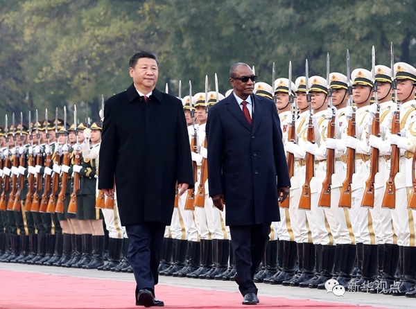 2016年11月2日,國家主席習近平在北京人民大會堂同幾內亞總統孔戴舉行會談。這是會談前,習近平在人民大會堂東門外廣場為孔戴舉行歡迎儀式。新華社記者丁林 攝