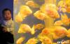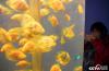 2017年1月8日,江蘇蘇州海洋館內一尾尾紋上了吉祥語及圖案的“紋身魚”在水族箱里格外漂亮,吸引了眾多參觀者的目光。據(jù)悉,這是用低強度激光紋在魚鱗上的,對魚沒有傷害,只要魚鱗不掉,圖案就不會消失。 視覺中國 海洋館現(xiàn)“紋身魚”迎新年