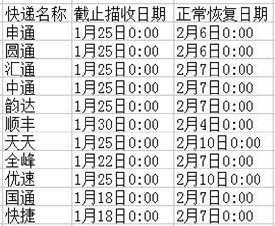 部分快遞公司各服務站點的安排不盡相同,具體停運時間以各服務站點實際情況為準。