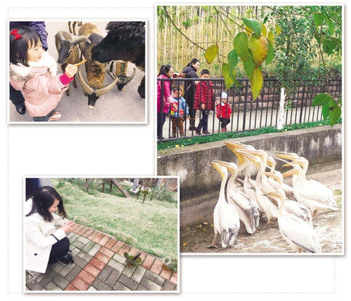 上圖:今年春節期間,家長帶著孩子在動物園喂白鵜鶘。 經濟日報·中國經濟網記者佘穎攝