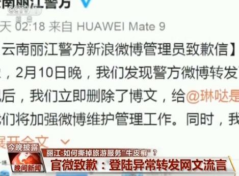 隨后,麗江警方微博管理員緊急刪除了該條微博。并于昨天凌晨在微博上發布致歉信,指出警方官方微博登陸出現異,F象,轉發博文不代表官方立場。